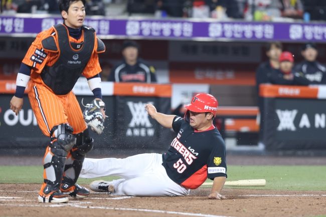 KIA는 3회초 한 점을 만회했다. 선두 박상준이 공 8개를 보고 볼넷으로 걸어나갔고, 박재현의 우전안타, 제리드 데일의 희생번트로 만들어진 1사 2·3루 찬스에서 김호령의 1루수 땅볼 때 박상준이 홈을 밟았다.