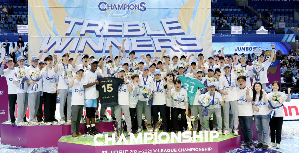 대한항공 선수단과 사무처직원이 10일 인천 계양체육관에서 열린 진에어 2025-2026 V리그 챔피언결정전 대한항공과 현대캐피탈 5차전에서 승리했다. 이들은 우승한 후 세리머니를 펼쳤다. 러셀과 료헤이도 우승의 기쁨을 함께했다. 대한항공 선수단과 사무처직원이 10일 인천 계양체육관에서 열린 진에어 2025-2026 V리그 챔피언결정전 대한항공과 현대캐피탈 5차전에서 승리하며 우승한 후 세리머니를 펼치고 있다. 2026.04.10. 독자들의 PICK! "한국 맞아?"...남편 전처들과 한집살이 "너무 친해" 이혼 포기 '동서와 내연관계' 남편 의심한 아내, 결국 '친자확인' 검사…결과는? 은행 취업 실패→유튜버로 대박...'77억 전셋집' 공개 "돈 안 줘서, 복수한다 생각"...정선희, 故안재환 실종 신고 안 한 이유
