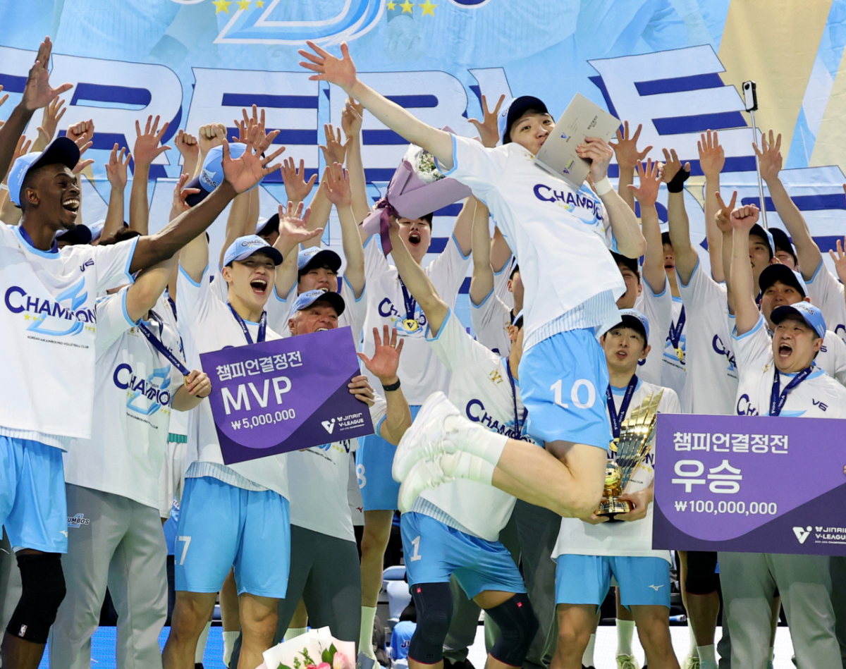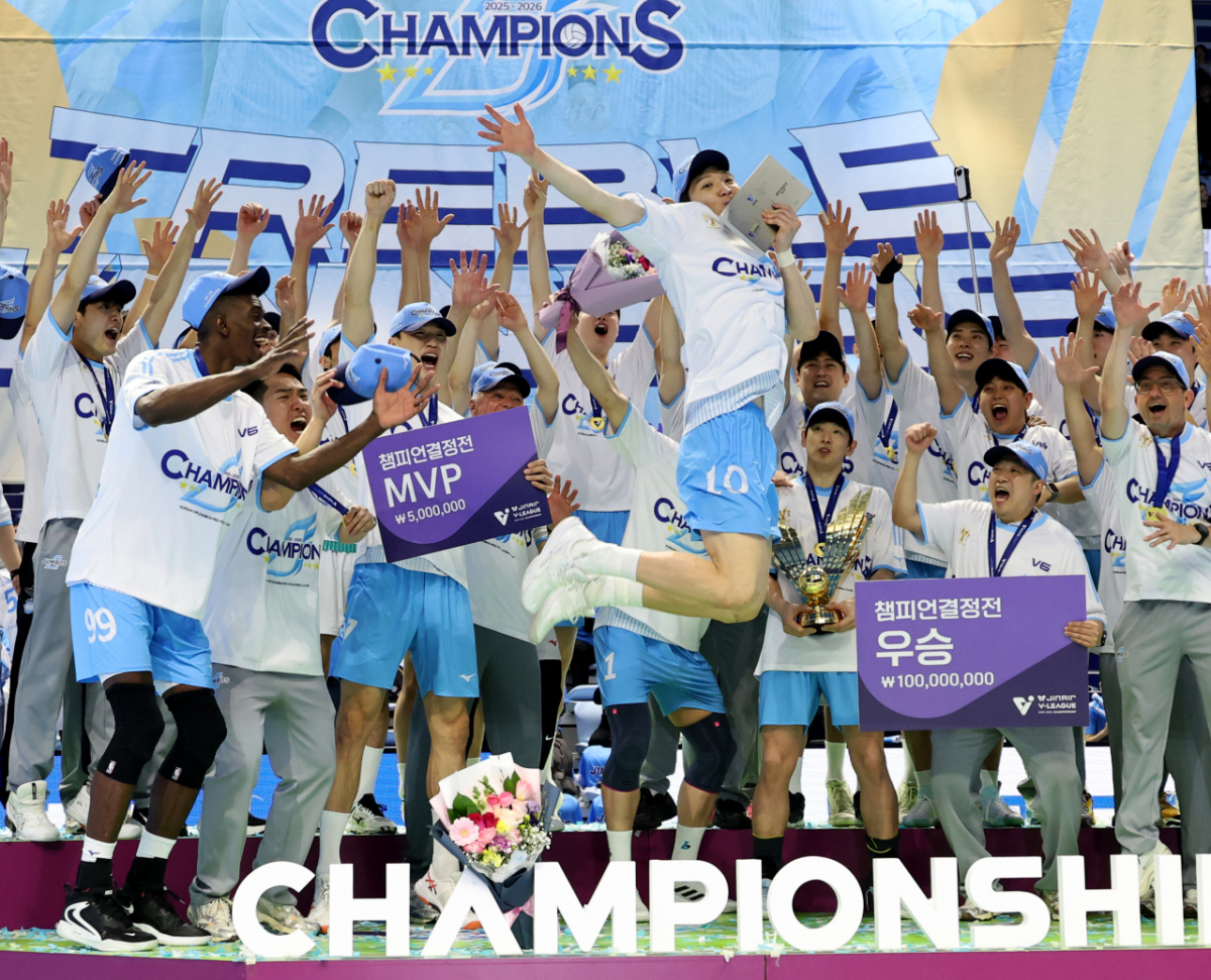 MVP 정지석이 10일 인천 계양체육관에서 열린 진에어 2025-2026 V리그 챔피언결정전에서 우승했다. 그는 대한항공과 현대캐피탈의 5차전에서 승리했다. 정지석은 우승 후 트로피세리머니를 펼쳤다. MVP 정지석이 10일 인천 계양체육관에서 열린 진에어 2025-2026 V리그 챔피언결정전 대한항공과 현대캐피탈 5차전에서 승리하며 우승한 후 트로피세리머니를 펼치고 있다. 2026.04.10. 독자들의 PICK! "한국 맞아?"...남편 전처들과 한집살이 "너무 친해" 이혼 포기 '동서와 내연관계' 남편 의심한 아내, 결국 '친자확인' 검사…결과는? 은행 취업 실패→유튜버로 대박...'77억 전셋집' 공개 "돈 안 줘서, 복수한다 생각"...정선희, 故안재환 실종 신고 안 한 이유