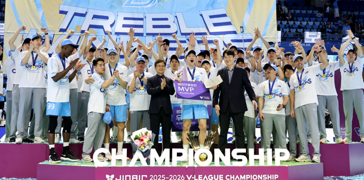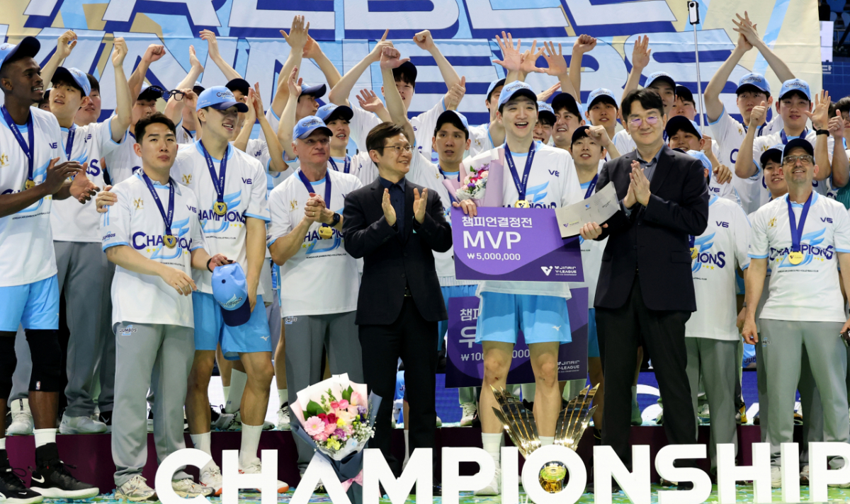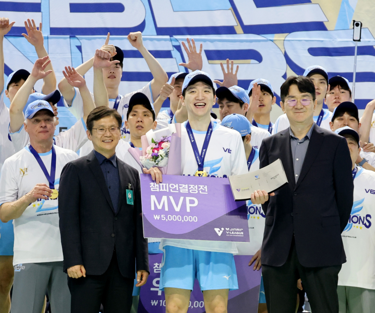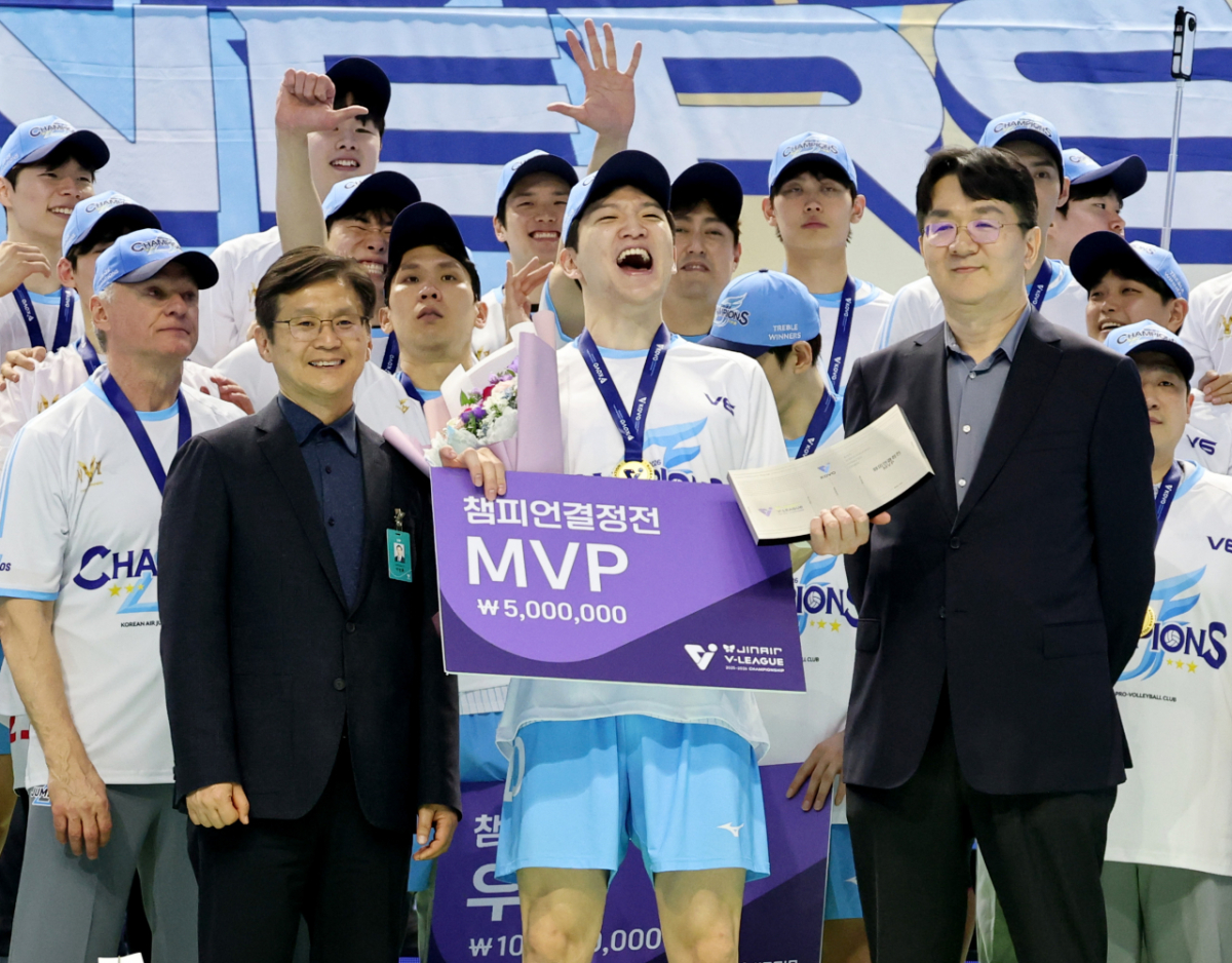 정지석이 10일 인천 계양체육관에서 열린 진에어 2025-2026 V리그 챔피언결정전 대한항공과 현대캐피탈 5차전에서 승리했다. 그는 우승 후 조원태 KOVO총재로부터 트로피를 수상했다. 정지석은 MVP 시상 후 기념촬영을 했다. MVP 정지석이 10일 인천 계양체육관에서 열린 진에어 2025-2026 V리그 챔피언결정전 대한항공과 현대캐피탈 5차전에서 승리하며 우승한 후 조원태 KOVO총재로부터 트로피를 수상한 후 기념촬영을 하고 있다. 2026.04.10. 독자들의 PICK! "한국 맞아?"...남편 전처들과 한집살이 "너무 친해" 이혼 포기 '동서와 내연관계' 남편 의심한 아내, 결국 '친자확인' 검사…결과는? 은행 취업 실패→유튜버로 대박...'77억 전셋집' 공개 "돈 안 줘서, 복수한다 생각"...정선희, 故안재환 실종 신고 안 한 이유