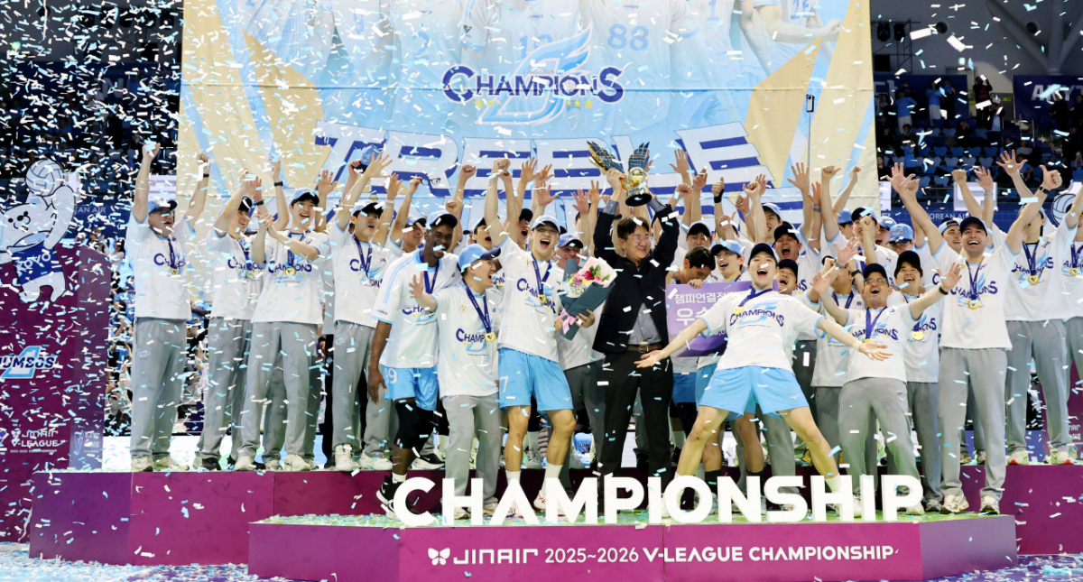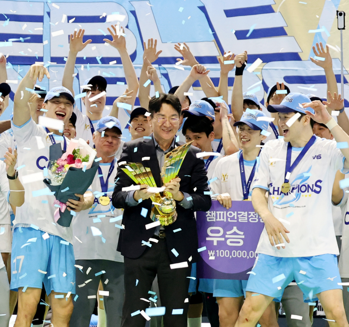 조원태 대한항공 구단주이자 KOVO 총재와 대한항공 선수들이 10일 인천 계양체육관에서 열린 진에어 2025-2026 V리그 챔피언결정전에서 승리했다. 이들은 현대캐피탈과의 5차전에서 우승을 확정했다. 우승 후 트로피세리머니를 펼치며 자축했다. 조원태 대한항공 구단주이자 KOVO 총재와 대한항공 선수들이 10일 인천 계양체육관에서 열린 진에어 2025-2026 V리그 챔피언결정전 대한항공과 현대캐피탈 5차전에서 승리하며 우승한 후 트로피세리머니를 펼치며 자축하고 있다. 2026.04.10. 독자들의 PICK! "한국 맞아?"...남편 전처들과 한집살이 "너무 친해" 이혼 포기 '동서와 내연관계' 남편 의심한 아내, 결국 '친자확인' 검사…결과는? 은행 취업 실패→유튜버로 대박...'77억 전셋집' 공개 "돈 안 줘서, 복수한다 생각"...정선희, 故안재환 실종 신고 안 한 이유