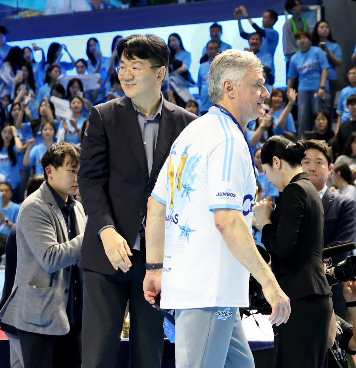 조원태 대한항공 구단주이자 KOVO 총재가 10일 인천 계양체육관에서 열린 진에어 2025-2026 V리그 챔피언결정전 대한항공과 현대캐피탈 5차전에서 승리하며 우승한 대한항공 헤난 감독에 금메달을 걸어주고 있다. 2026.04.10. 독자들의 PICK! "한국 맞아?"...남편 전처들과 한집살이 "너무 친해" 이혼 포기 '동서와 내연관계' 남편 의심한 아내, 결국 '친자확인' 검사…결과는? 은행 취업 실패→유튜버로 대박...'77억 전셋집' 공개 "돈 안 줘서, 복수한다 생각"...정선희, 故안재환 실종 신고 안 한 이유