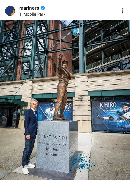 11일(이하 한국시간) 일본 스포츠 매체 ‘스포츠호치’ 보도에 따르면, 시애틀은 이날 미국 워싱턴주 시애틀 T-모바일 파크에서 열린 휴스턴 애스트로스와의 경기에서 이치로(시애틀 매리너스 회장 특별보좌 겸 인스트럭터)의 미국 야구 명예의 전당 헌액을 기념하는 동상 제막식을 진행했다.