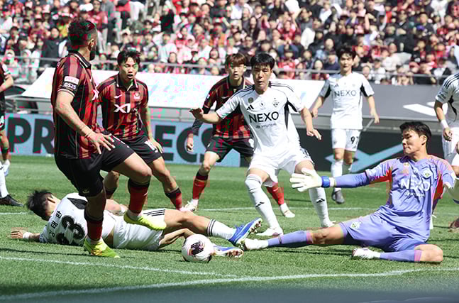 11일 서울월드컵경기장에서 하나은행 K리그1 2026 FC서울 대 전북현대 경기가 열렸다. 이 경기에서 FC서울 야잔의 세컨드 킥이 시도되었다. 전북현대 김태환이 태클로 이를 저지했다. 하나은행 K리그1 2026 FC서울 대 전북현대 경기가 11일 서울월드컵경기장에서 열렸다. FC서울 야잔의 세컨드 킥을 전북현대 김태환이 태클로 저지하고 있다. 독자들의 PICK! "한국 맞아?"...남편 전처들과 한집살이 "너무 친해" 이혼 포기 '동서와 내연관계' 남편 의심한 아내, 결국 '친자확인' 검사…결과는? 온주완 "♥방민아와 5년 비밀연애?…"손잡고 다녔는데" '190억' 찍은 한남더힐, 옥주현이 최고가 매입했다..."100평 규모"