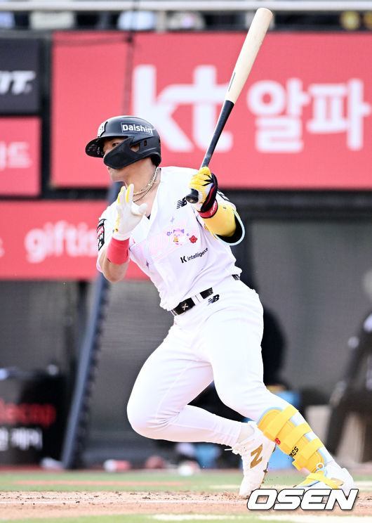 3회말 무사 1,2루에서 KT 안현민이 좌익선상으로 적시타를 날리고 있다. 2026.04.11 /[email protected]