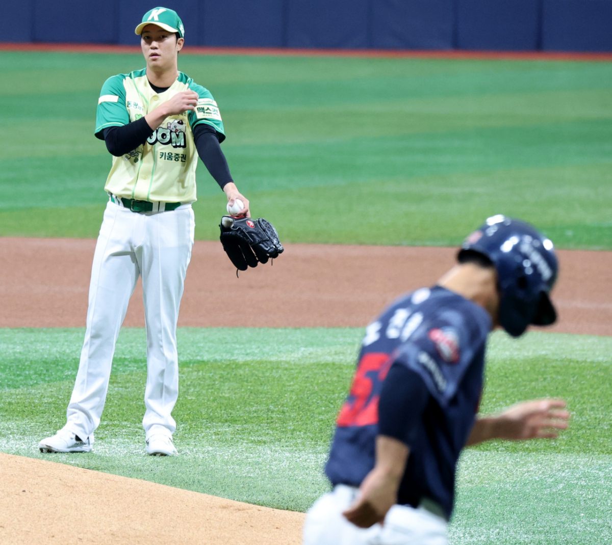 첫타자 황성민은 내야땅볼로 처리한 안우진