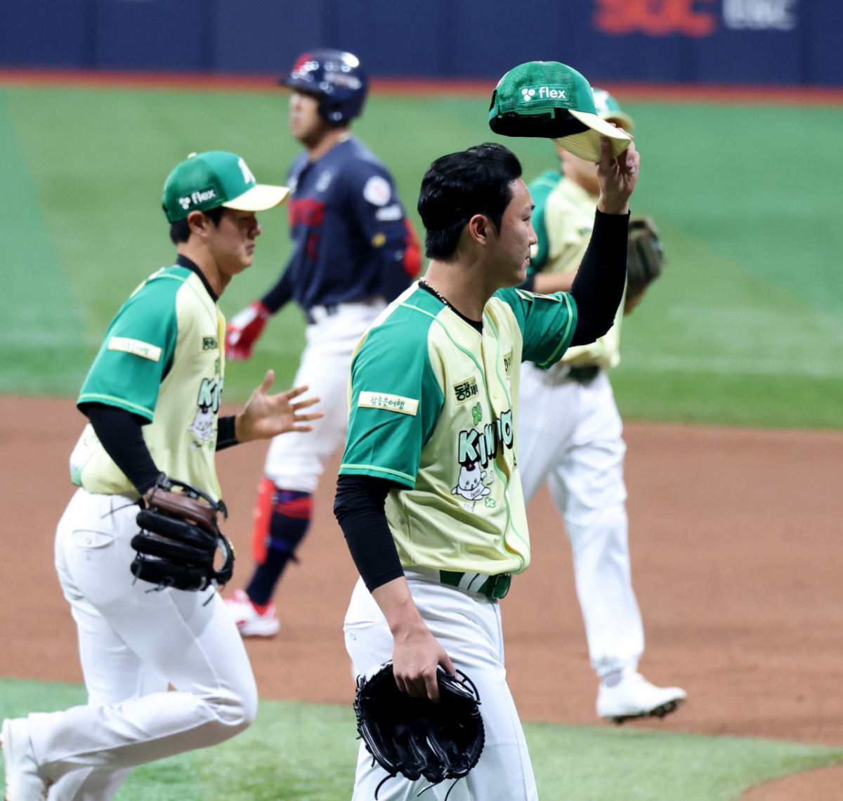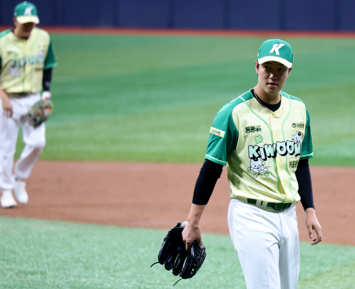 무실점으로 이닝을 마무리하며 더그아웃으로 향하는 안우진