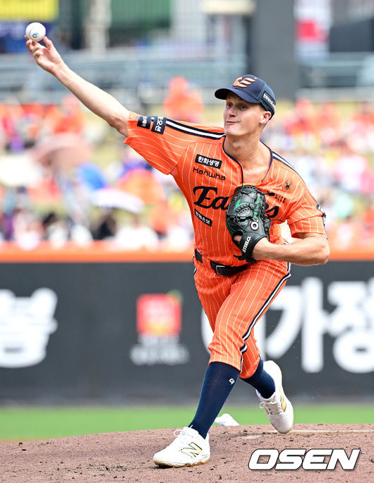 12일 대전 한화생명볼파크에서 2026 신한 SOL KBO리그 한화 이글스와 KIA 타이거즈의 경기가 열렸다. 홈팀 한화는 잭 쿠싱을, 방문팀 KIA는 애덤 올러를 선발로 내세웠다. 1회초 한화 선발 잭 쿠싱이 힘차게 공을 뿌렸다.