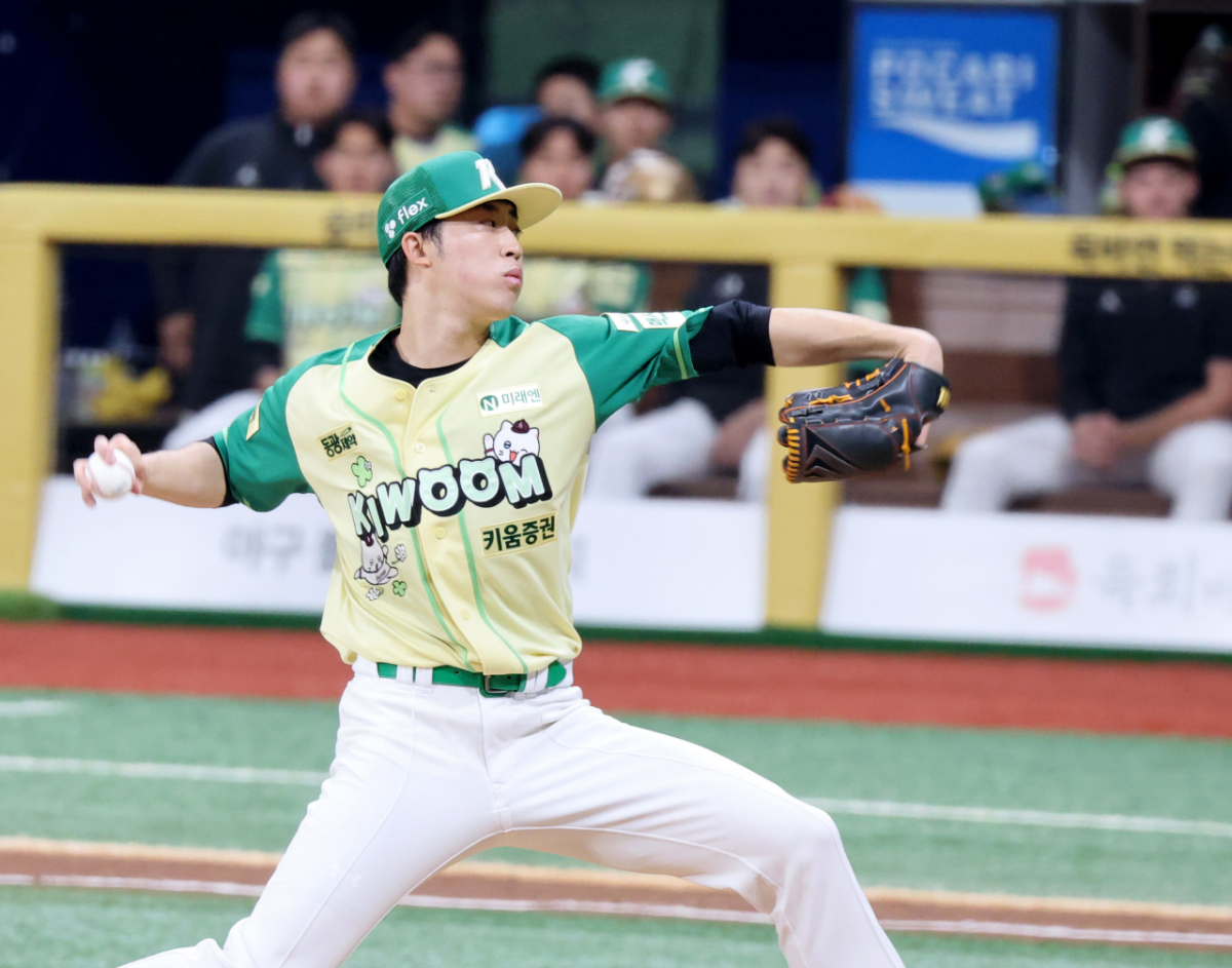 키움 우완투수 배동현이 12일 고척스카이돔에서 열린 2026 KBO리그 롯데자이언츠와 키움히어로즈의 경기 2회초 안우진에 이어 등판하고 있다.. 2026.04.12.