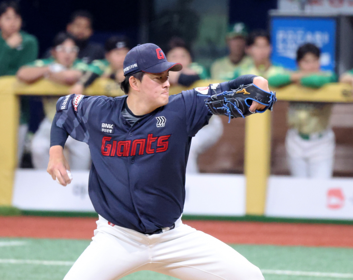 롯데 우완불펜 김원중이 12일 고척스카이돔에서 열린 2026 KBO리그 롯데자이언츠와 키움히어로즈의 경기 7회말 등판해 무실점 피칭을 펼치고 있다.. 2026.04.12.