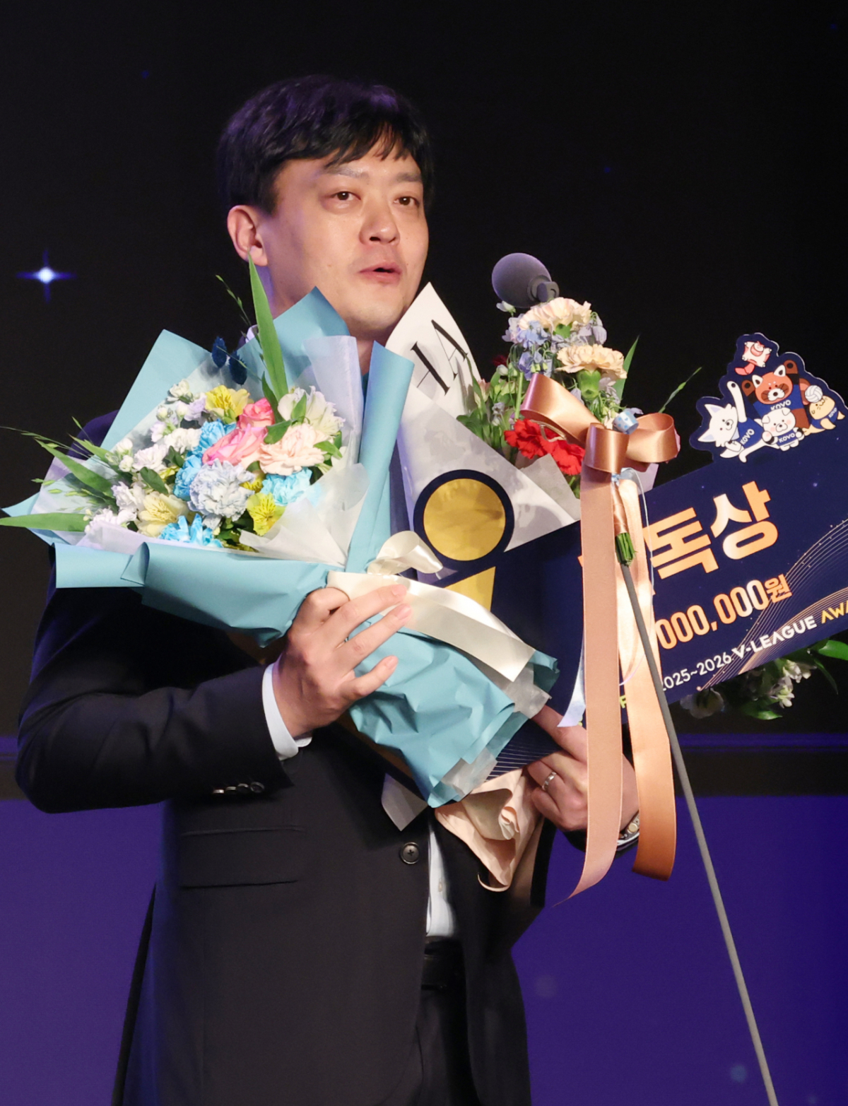이영택 GS칼텍스 감독이 13일 서울 광진구 그랜드 워커힐 호텔 비스타홀에서 열린 진에어 2025~2026 V-리그 시상식에 참석했다. 이영택 감독은 조원태 총재로부터 감독상을 수상했다. 그는 수상 후 소감을 밝혔다.