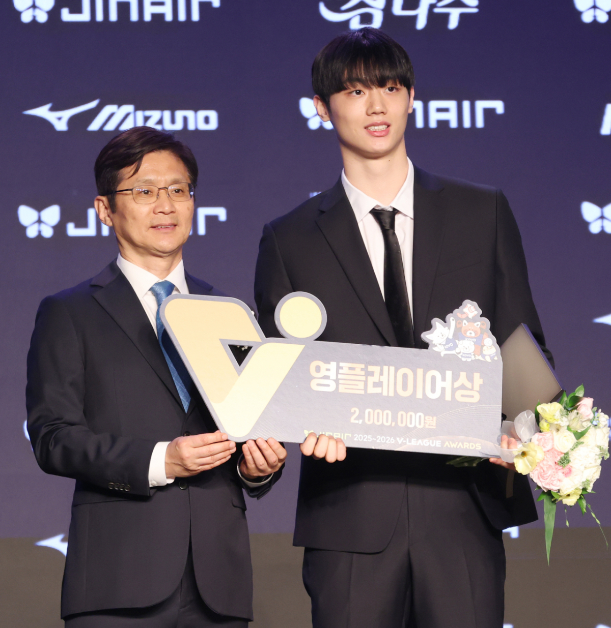 진에어 2025~2026 V-리그 시상식이 13일 서울 광진구 그랜드 워커힐 호텔 비스타홀에서 열렸다. 이우진(삼성화재)이 영플레이어상을 수상한 후 기념촬영을 하고 있다. 독자들의 PICK! 양준혁, 사업 실패로 '50억' 날렸다…"선수 시절 번 돈 다 까먹어" "이혼은 승자 없어" 이범수 혼자 남은 집 공개...휑한 거실서 혼밥 '음주운전' 야구선수, 여성 팬에 막말..."타이어보다 못한 뚱녀" 지예은, '스맨파' 댄서 바타와 열애 중…"교회 인연, 응원 부탁"