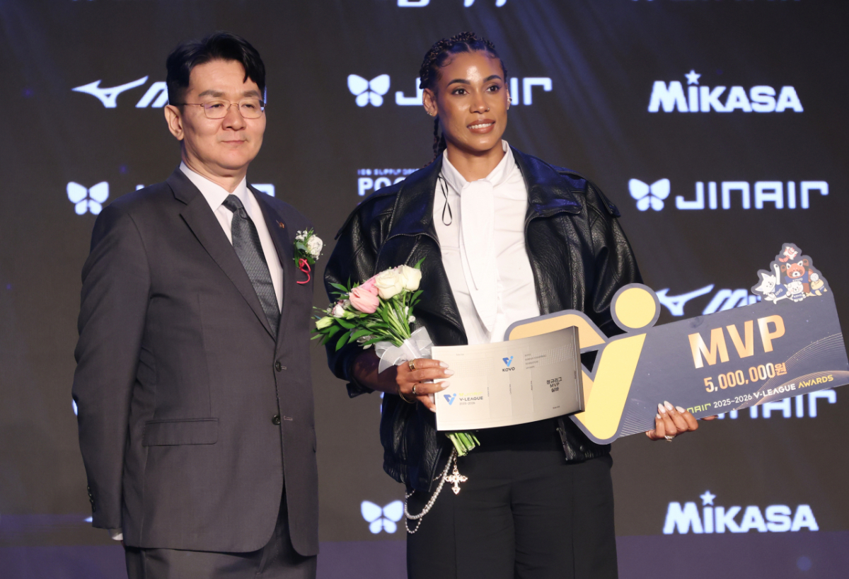 진에어 2025~2026 V-리그 시상식이 13일 서울 광진구 그랜드 워커힐 호텔 비스타홀에서 열렸다. 지젤 실바(GS칼텍스)가 MVP 수상한 후 기념촬영을 하고 있다 독자들의 PICK! 양준혁, 사업 실패로 '50억' 날렸다…"선수 시절 번 돈 다 까먹어" "이혼은 승자 없어" 이범수 혼자 남은 집 공개...휑한 거실서 혼밥 '음주운전' 야구선수, 여성 팬에 막말..."타이어보다 못한 뚱녀" 지예은, '스맨파' 댄서 바타와 열애 중…"교회 인연, 응원 부탁"