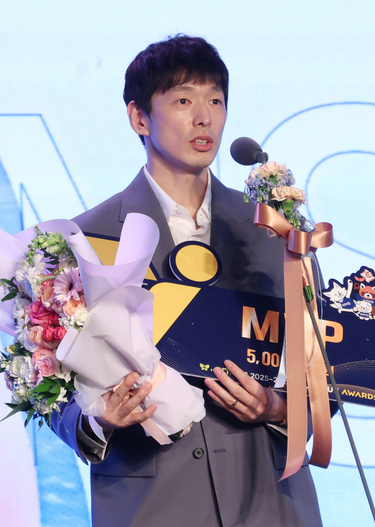 진에어 2025~2026 V-리그 시상식이 13일 서울 광진구 그랜드 워커힐 호텔 비스타홀에서 열렸다. 한선수(대한항공)가 MVP 수상한 후 소감을 밝히고 있다 독자들의 PICK! 양준혁, 사업 실패로 '50억' 날렸다…"선수 시절 번 돈 다 까먹어" "이혼은 승자 없어" 이범수 혼자 남은 집 공개...휑한 거실서 혼밥 '음주운전' 야구선수, 여성 팬에 막말..."타이어보다 못한 뚱녀" 지예은, '스맨파' 댄서 바타와 열애 중…"교회 인연, 응원 부탁"