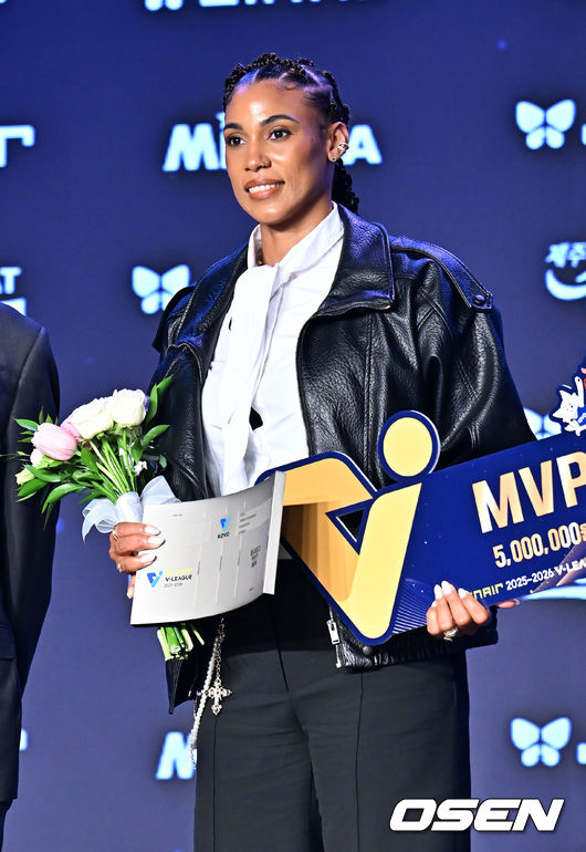 실바는 13일 서울 광진구 광장동에 있는 그랜드워커힐 서울 비스타홀에서 열린 진에어 2025~2026 V-리그 시상식에서 여자부 MVP로 뽑혔다. 기자단 투표 34표 중 17표를 얻었다. 한국도로공사 레티치아 모마 바소코(등록명 모마·12표), 현대건설 양효진(3표), 한국도로공사 강소휘(2표)를 제쳤다.