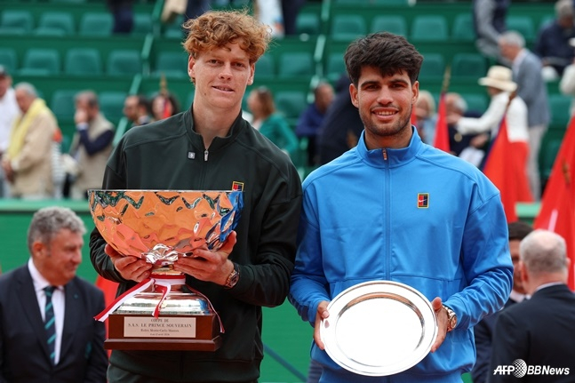 신네르는 13일(한국시간) 모나코 몬테카를로에서 열린 2026 남자프로테니스(ATP) 투어 마스터스 1000시리즈 몬테카를로 마스터스(총상금 630만 9095유로) 단식 결승에서 세계 1위이자 디펜딩 챔피언인 알카라스를 2-0(7-6<7-5> 6-3)으로 꺾고 우승컵을 들어 올렸다.