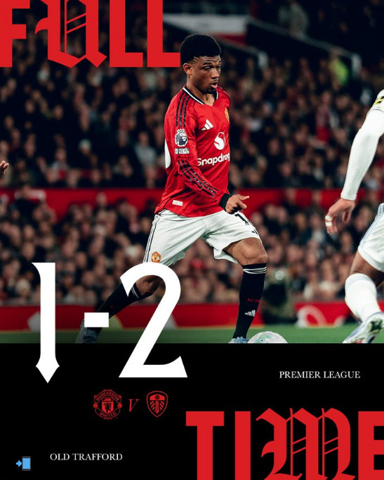 맨유는 14일(한국시간) 영국 맨체스터의 올드 트래포드에서 열린 리즈와의 '2025~2026 잉글랜드 프리미어리그(EPL)' 32라운드 홈 경기에서 노아 오카포에게 멀티골을 내주며 1-2 패배했다.
