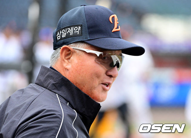 경기에 앞서 한화 김경문 감독이 훈련을 지켜보며 미소짓고 있다. 2026.04.14/ [email protected]