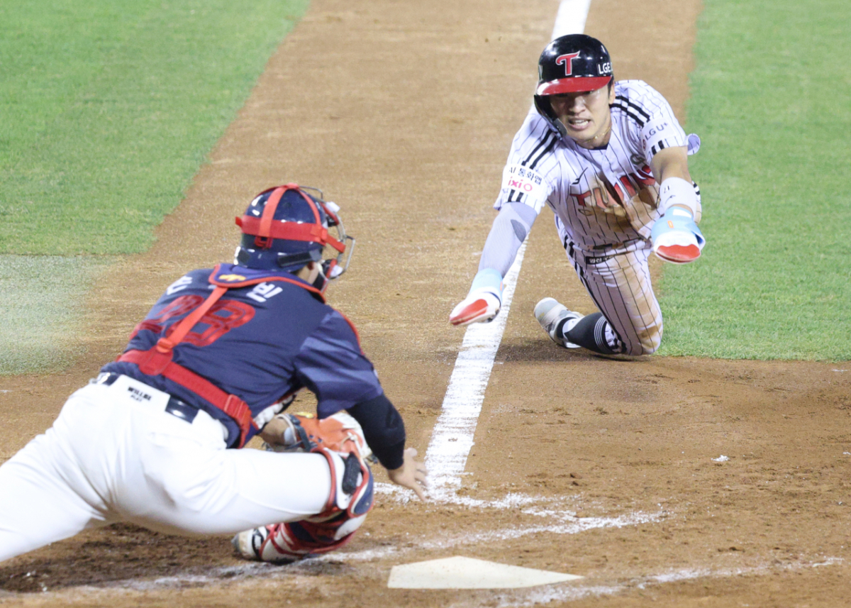 2026 신한 SOL KBO리그 LG 트윈스와 롯데 자이언츠의 경기가 14일 서울 잠실야구장에서 열렸다. LG의 박해민은 4회말 1사 3루 상황에서 이주헌의 좌익수 플라이 때 홈으로 쇄도했다. 그러나 롯데 포수 손성빈에게 태그아웃되며 득점에 실패했다.
