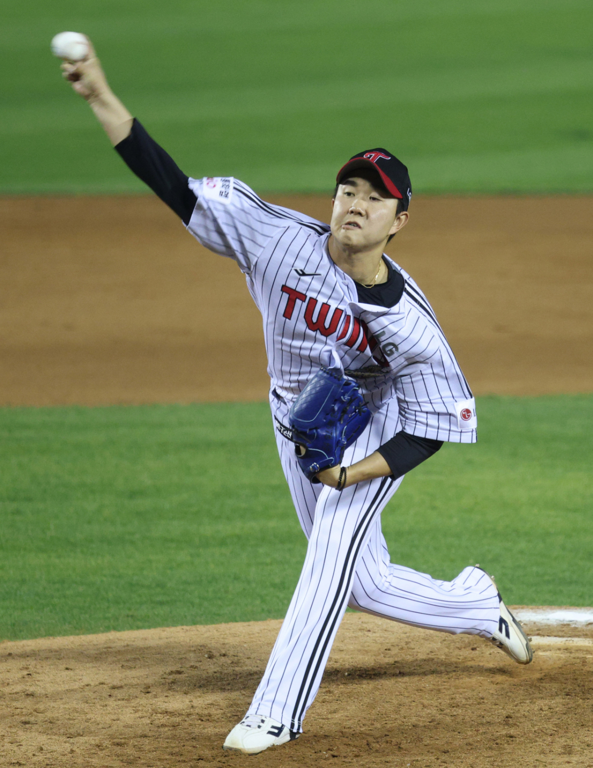 LG 마무리 유영찬이 역투하고 있다.