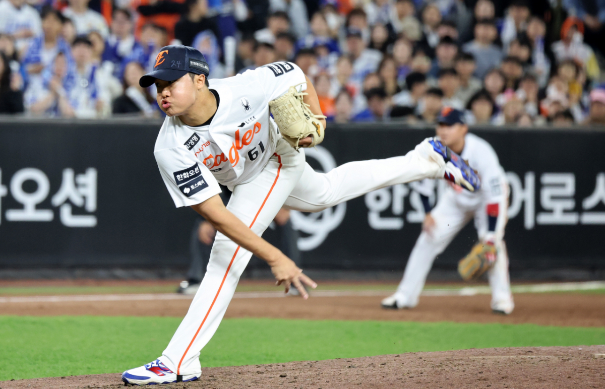 한화 우완불펜 정우주가 14일 대전한화생명볼파크에서 열리는 2026KBO리그 한화이글스와 삼성라이온즈 경기 7회초 등판하고 있다. 2026.04.14.