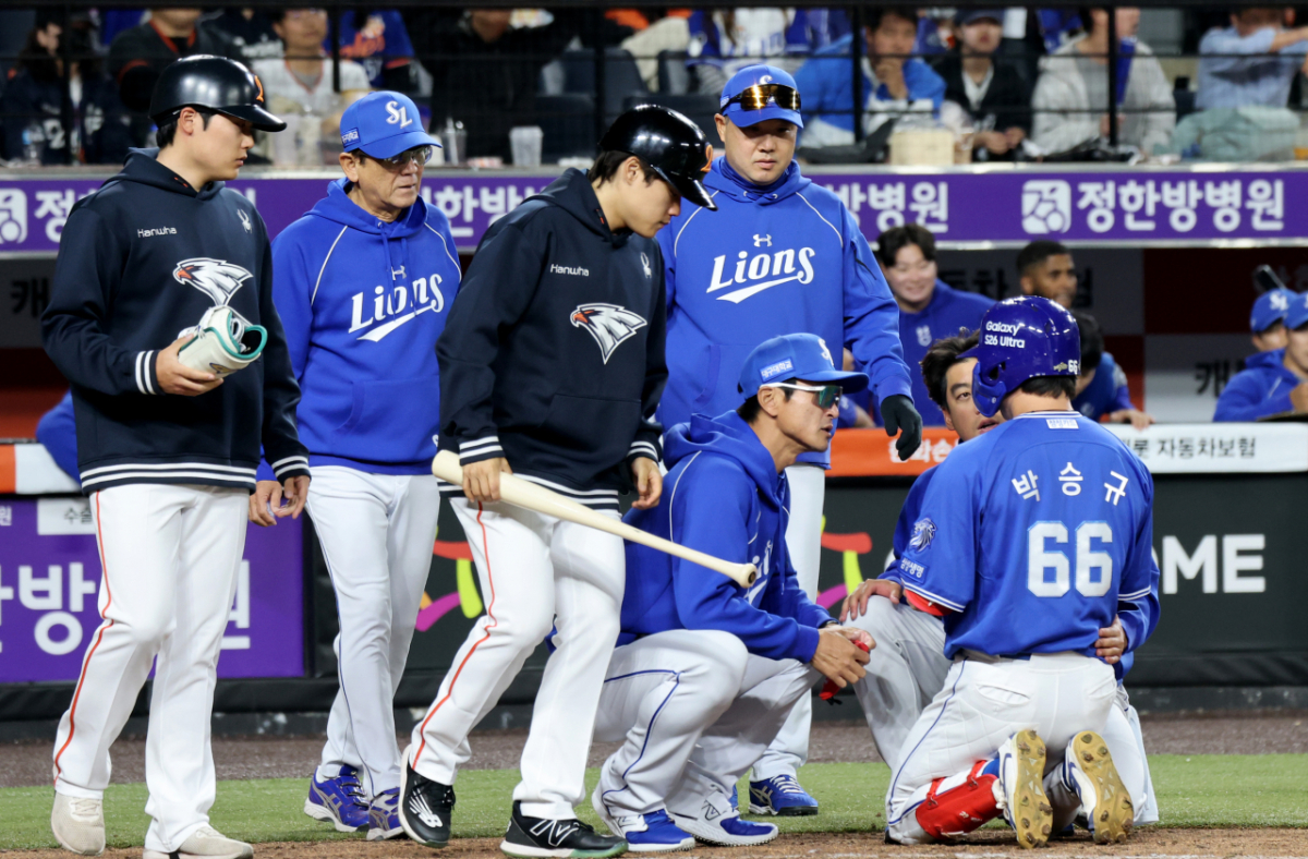 2026 KBO리그 한화이글스와 삼성라이온즈의 경기 9회초 1사 1,2루 상황에서 삼성 1번타자 박승규가 김서현의 볼에 맞았다. 이 장면은 4월 14일 대전한화생명볼파크에서 포착되었다. 사진은 '9회초 김서현 볼 맞는 박승규'라는 제목으로 보도되었다.