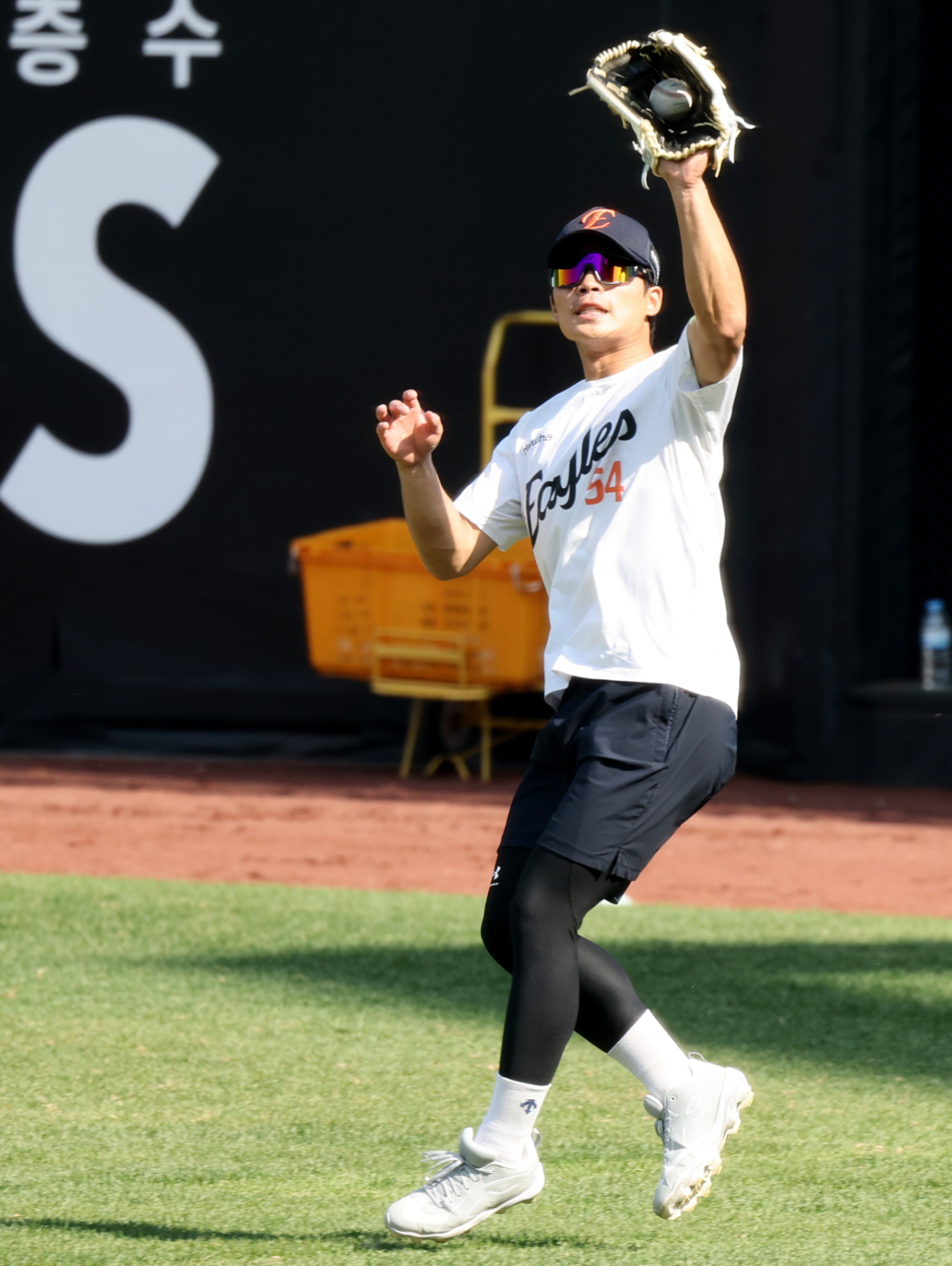 한화 외야수 오재원이 15일 대전한화생명볼파크에서 열리는 2026KBO리그 한화이글스와 삼성라이온즈 경기를 앞두고 외야수비훈련을 하고 있다. 2026.04.15.