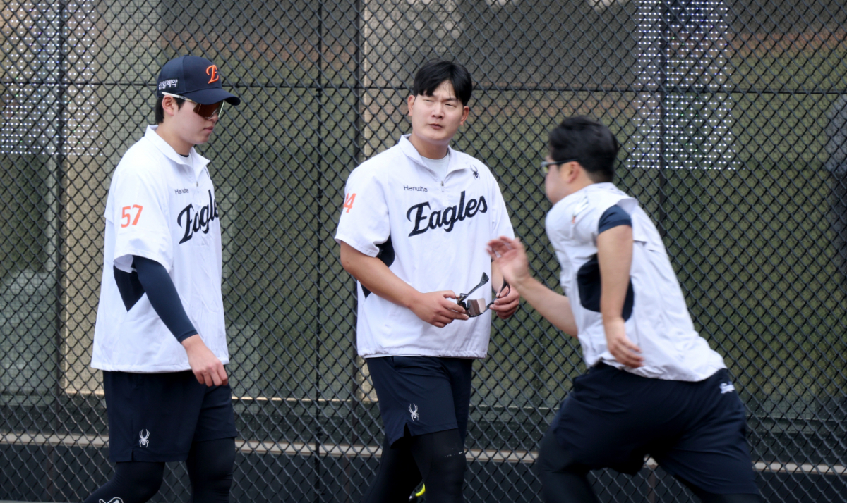 한화 김서현이 15일 대전한화생명볼파크에서 열리는 2026KBO리그 한화이글스와 삼성라이온즈 경기를 앞두고 훈련을 마무리하며 더그아웃으로 향하고 있다. 2026.04.15.