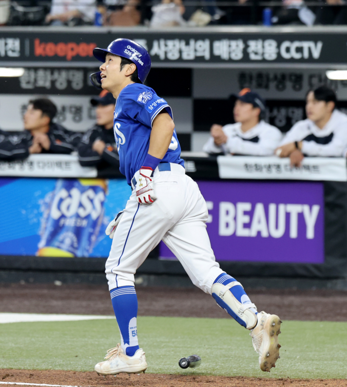 삼성 라이온즈의 2번 타자 김지찬은 15일 대전한화생명볼파크에서 열린 2026 KBO리그 한화 이글스와의 경기에서 1회초 1사 만루 상황에 타석에 들어섰다. 그는 외야플라이로 타점을 올렸다. 이로써 김지찬은 팀에 득점을 안겼다. 삼성 2번타자 김지찬이 15일 대전한화생명볼파크에서 열리는 2026KBO리그 한화이글스와 삼성라이온즈 경기 1회초 1사 만루에서 외야플라이로 타점을 올리고 있다.. 2026.04.15. 독자들의 PICK! '성매매 논란' 지나, 결혼·출산?…웨딩드레스 이어 유모차까지 100만원도 못 벌던 개그맨..."수입 1000배" 변호사 된 깜짝 근황 "제수씨와 잠자리를?" 초강수 질문…'친자확인' 남편, 끝내 결백 입증 "조진웅, 은퇴할 줄 몰랐다…식사 제안도 거절" 정지영 감독이 전한 근황