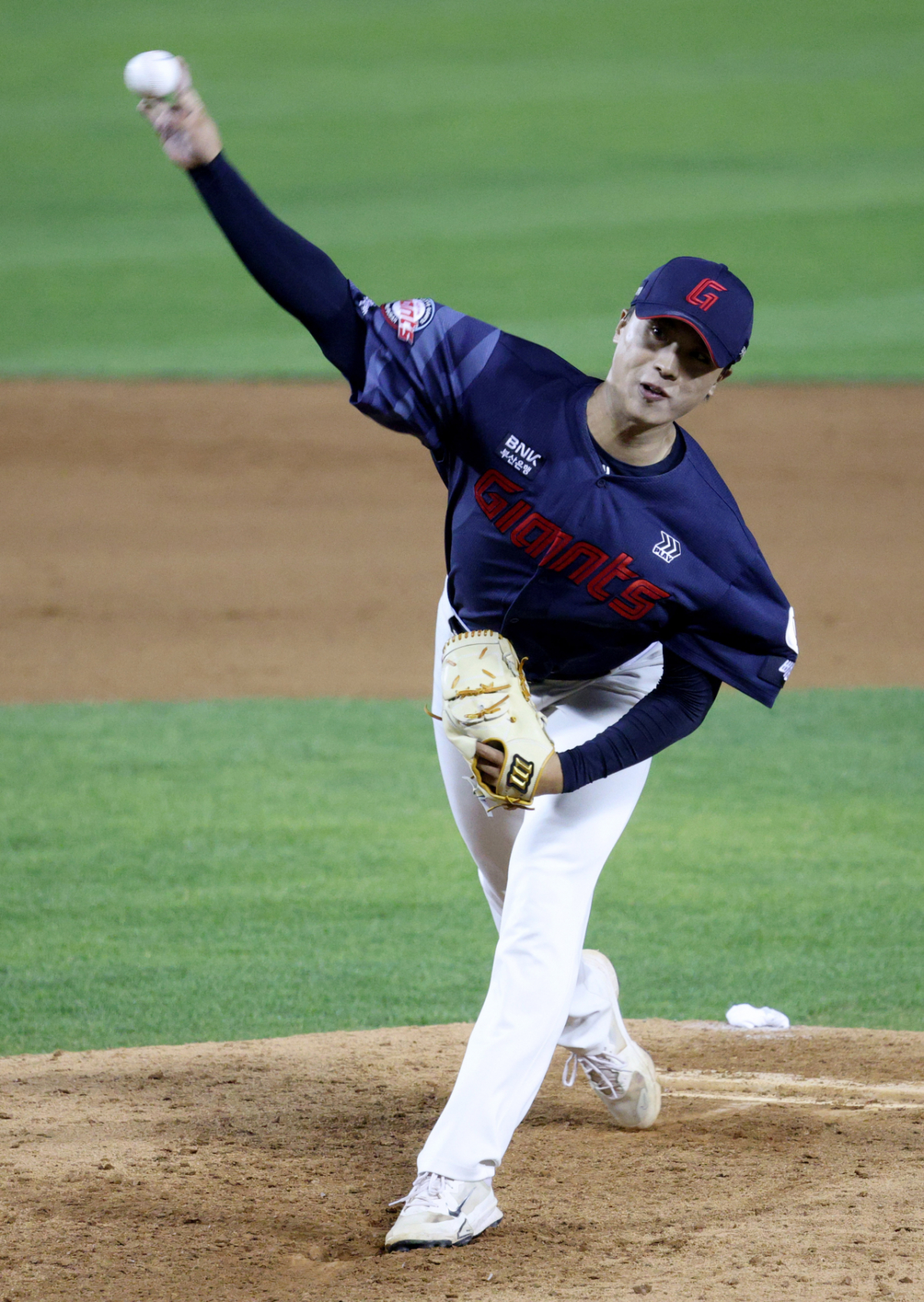 롯데 박정민이 7회말 구원 등판, 역투하고 있다.