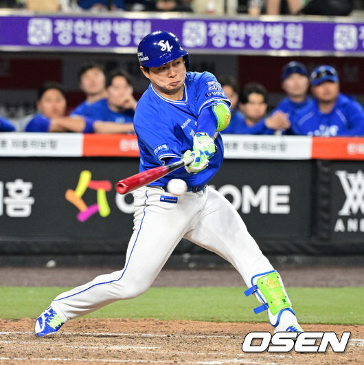 9회초 1사 1,2루에서 삼성 김헌곤이 1타점 적시타를 날리고 있다. 2026.04.15/ [email protected]