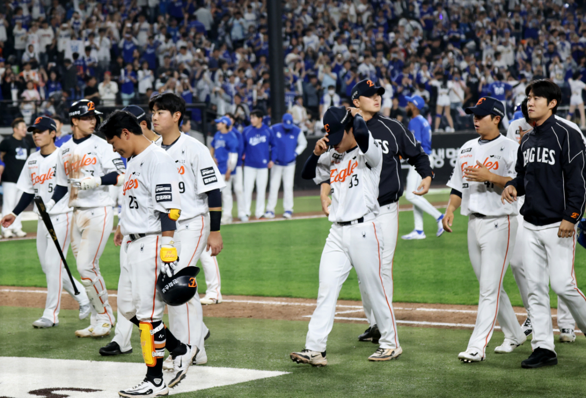 한화 선수들이 5일 대전한화생명볼파크에서 열린 2026 KBO리그 삼성라이온즈와의 경기에서 패배했다. 한화는 1회초 선발투수 에르난데스가 대량실점하며 강판됐고, 삼성도 양창섭이 2회말 한화를 버티지 못하고 강판됐다. 경기에 패한 한화 선수들은 아쉬운 발걸음으로 퇴장했다.