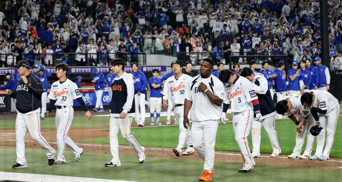 한화선수들이 5일 대전한화생명볼파크에서 열리는 2026KBO리그 한화이글스와 삼성라이온즈 경기에서 패한후 아쉬운 발걸음으로 퇴장하고 있다. 한화는 1회초 선발투수 에르난데스가 무너지며 대량실점하며 강판됐고 삼성도 양창섭이 2회말 한화를 버티지못하고 강판됐다. 2026.04.15.