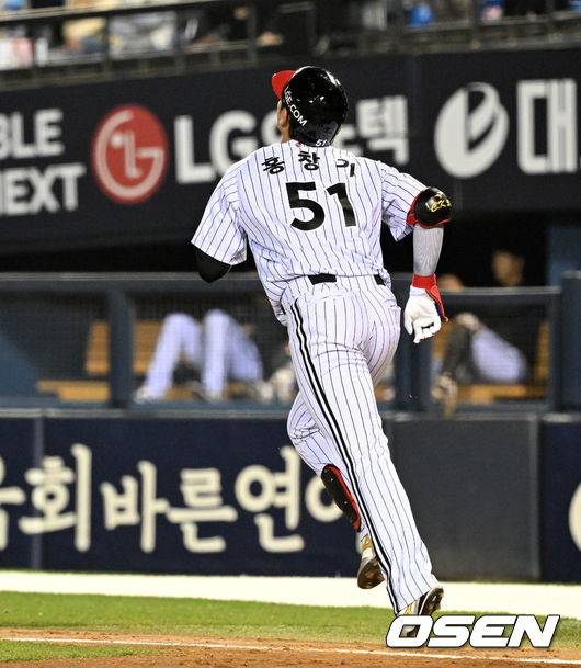5회말 2사에서 LG 홍창기가 좌전 안타를 치고 그라운드를 달리고 있다. 2026.04.15 /[email protected]