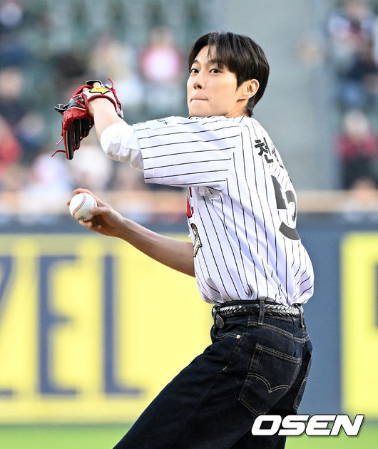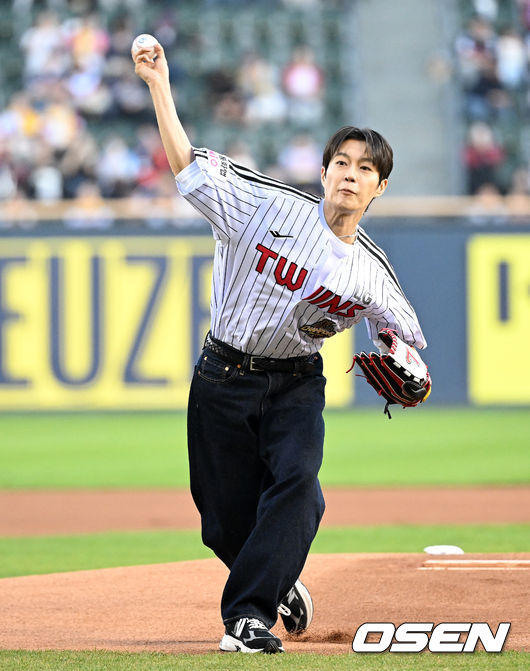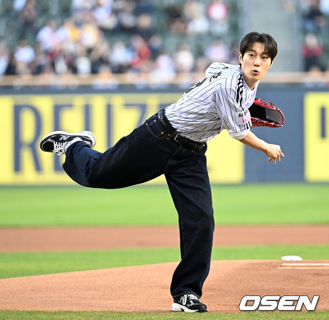 데뷔 15년 만에 처음으로 밟은 프로야구 마운드에서 윤두준은 종목에 대한 깊은 이해와 예의를 보여주며 '개념 시구'의 새로운 이정표를 세웠다. /[email protected]