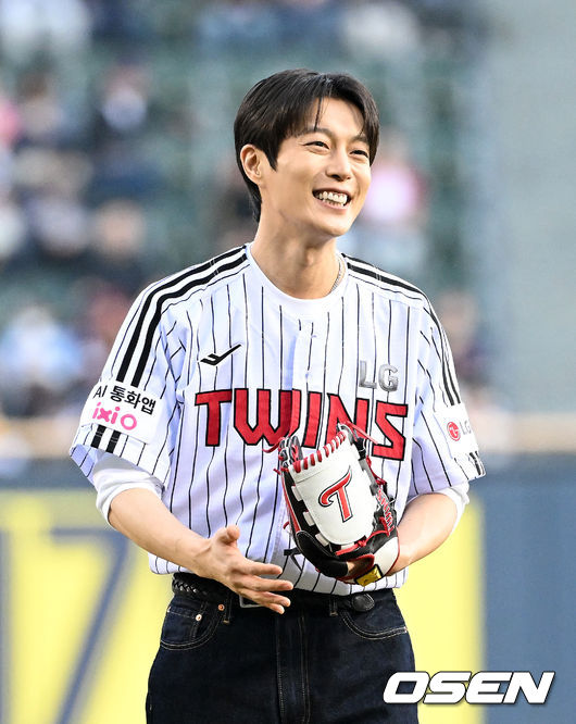 윤두준은 지난 15일 서울 잠실야구장에서 열린 '2026 신한 SOL Bank KBO리그' LG 트윈스와 롯데 자이언츠의 경기에 앞서 데뷔 후 첫 프로야구 시구에 나섰다.