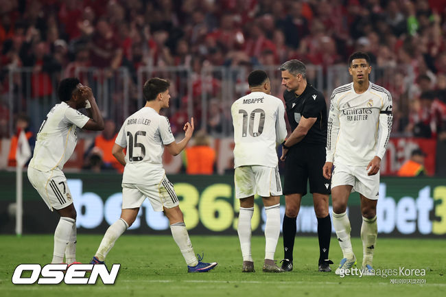 이날 레알 선수단은 주심의 판정에 불만을 터뜨렸다. 후반 41분 에두아르도 카마빙가가 경고 누적으로 퇴장당하며 경기는 급격히 바이에른 뮌헨 쪽으로 기울었기 때문이다.
