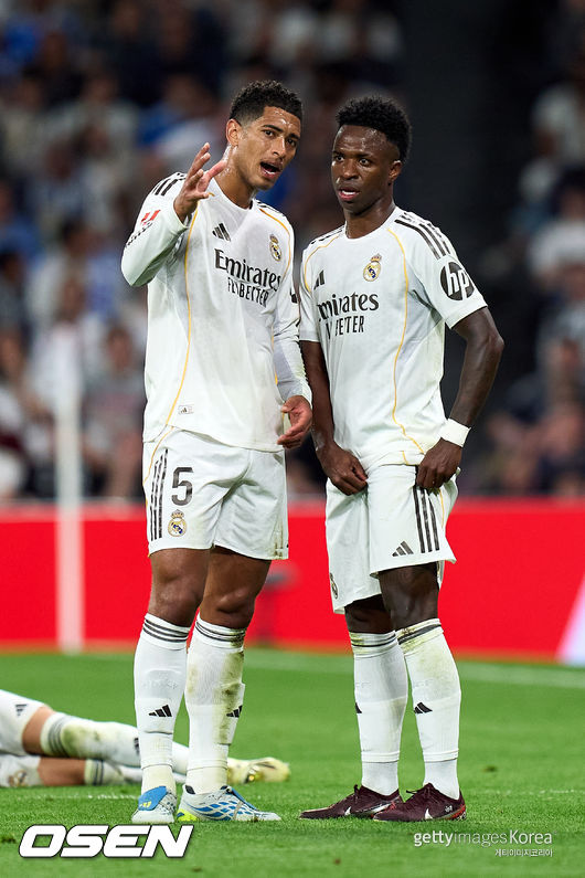 [OSEN=강필주 기자] 레알 마드리드의 '핵심' 비니시우스 주니오르(26)와 주드 벨링엄(23)이 경기 도중 거친 설전을 벌이는 장면이 포착됐다.