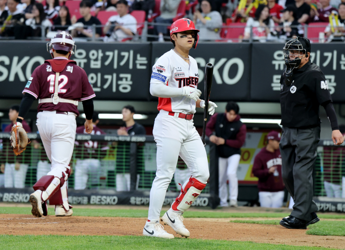 김도영이 16일 광주KIA챔피언스필드에서 열린 2026KBO리그 기아타이거즈와 키움히어로즈의 경기에서 첫 타석 삼진으로 물러났다. 그는 기아의 3번 타자로 출전했다. 이 경기는 2026년 4월 16일에 진행되었다. 기아 3번타자 김도영이 16일 광주KIA챔피언스필드에서 열리는 2026KBO리그 기아타이거즈와 키움히어로즈의 경기 1회말 삼진으로 물러나고 있다. 2026.04.16. 독자들의 PICK! 100만원도 못 벌던 개그맨..."수입 1000배" 변호사 된 깜짝 근황 "조진웅, 은퇴할 줄 몰랐다…식사 제안도 거절" 정지영 감독이 전한 근황 치어리더 정가예 "폭언·욕설에 병원 치료→활동 중단" 무슨 일? "새벽에 전화, 돈 요구" 김원희, 사생활 털렸다...해킹범이 협박