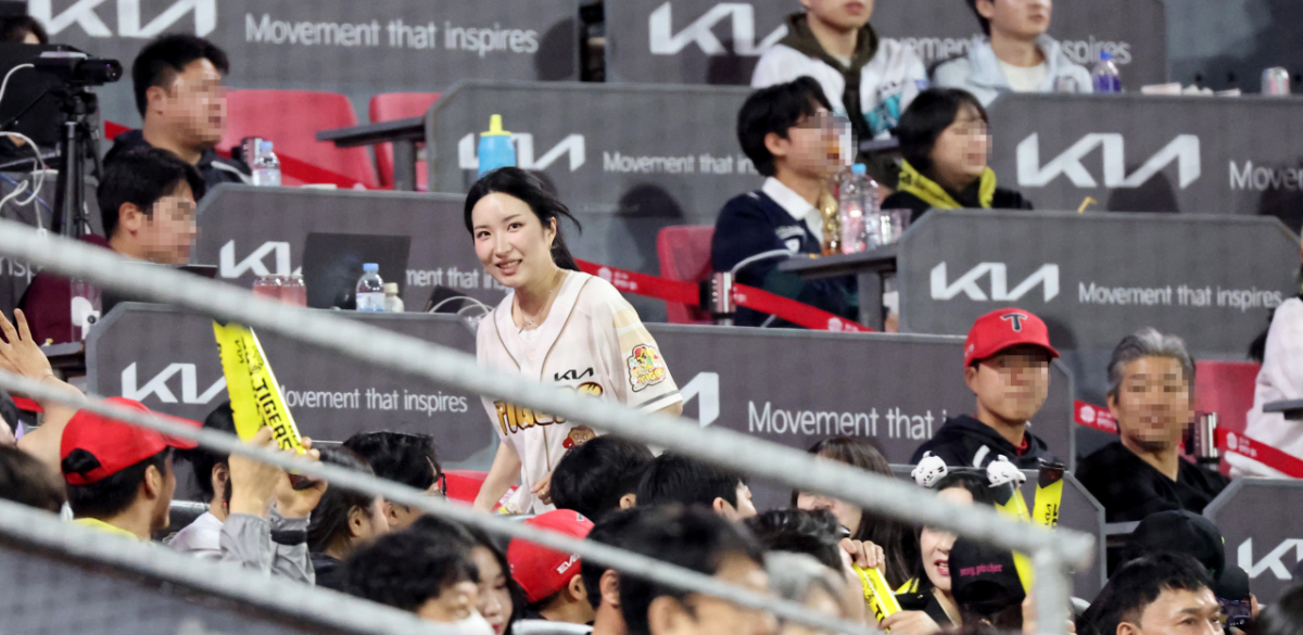 시구를 마친 김길리가 16일 광주KIA챔피언스필드에서 열리는 2026KBO리그 기아타이거즈와 키움히어로즈의 경기를 관전하기위해 관중석을 이동하고 있다. 2026.04.16.