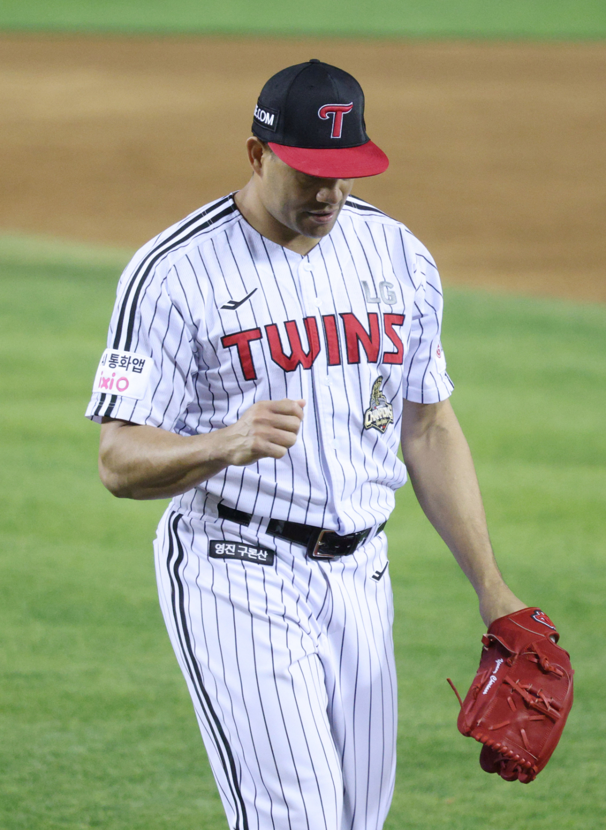 LG 선발 치리노스가 5회 투구를 마친 후 더그아웃으로 향하고 있다.