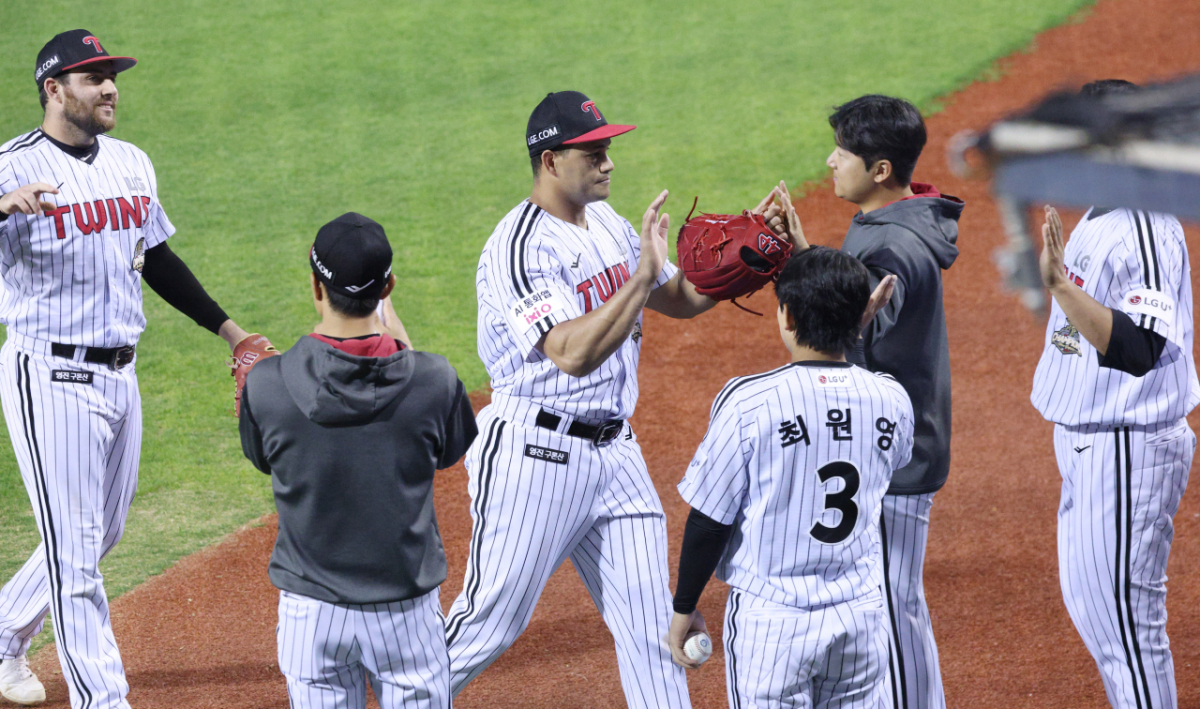 LG 선발 치리노스가 5회 투구를 마친 후 더그아웃으로 향하고 있다.