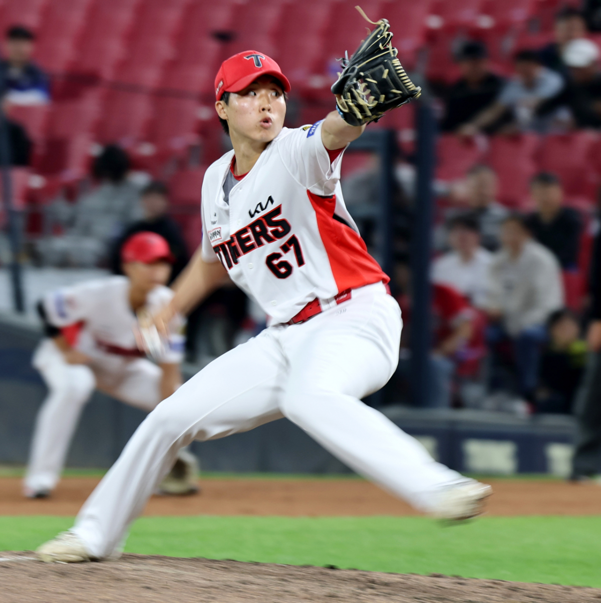 기아 우완불펜 홍민기가 16일 광주KIA챔피언스필드에서 열린 2026KBO리그 기아타이거즈와 키움히어로즈의 경기 6회초 네일에 이어 등판해 무실점 역투하고 있다. 2026.04.16.