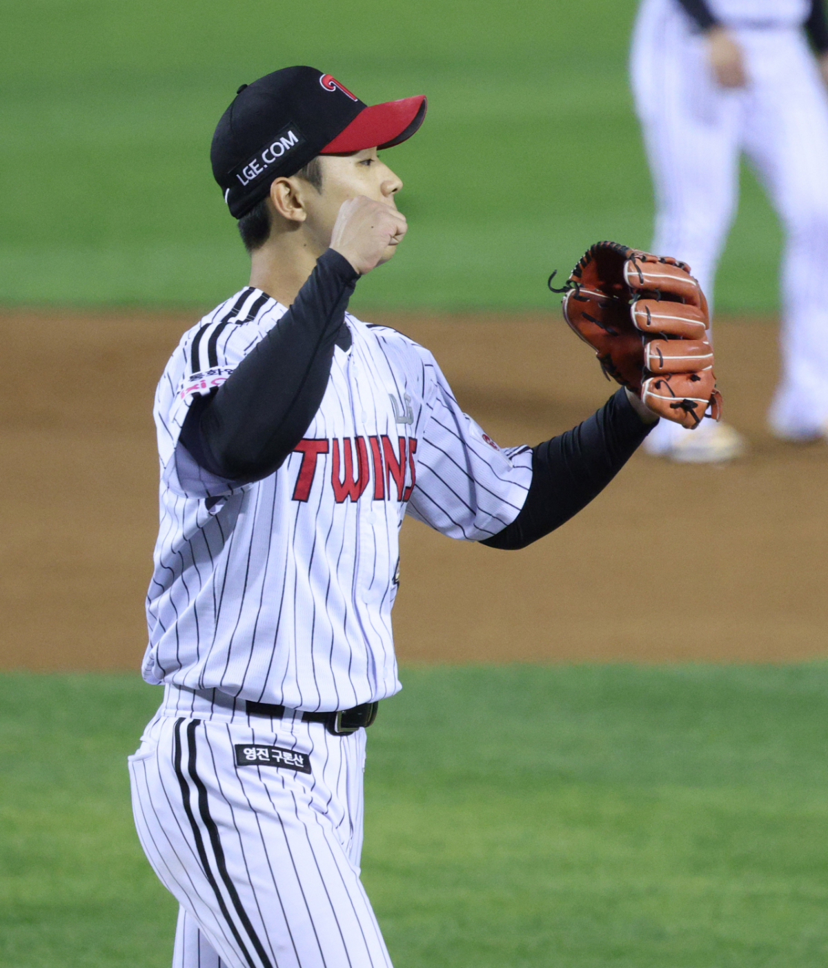 LG 우강훈이 7회 투구를 마친 후 더그아웃으로 향하고 있다.