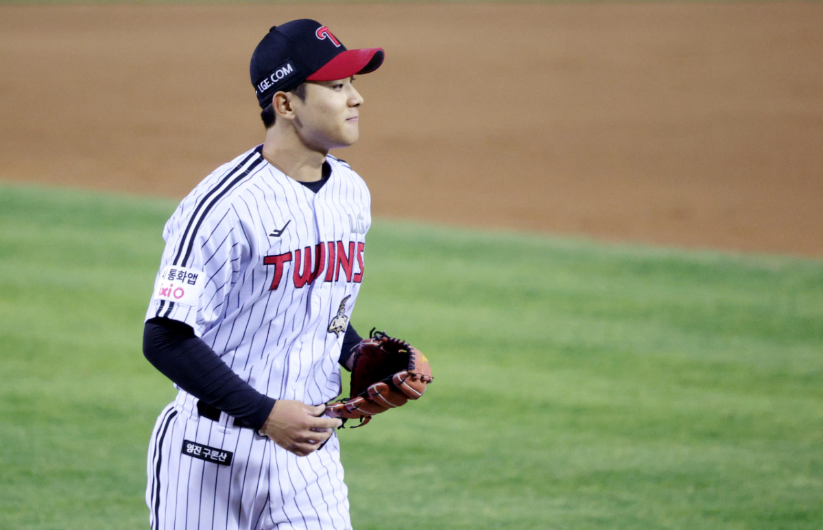 LG 우강훈이 7회 투구를 마친 후 더그아웃으로 향하고 있다.