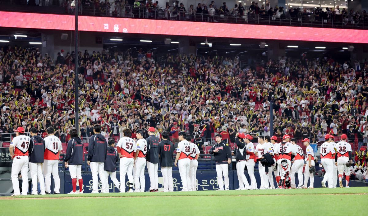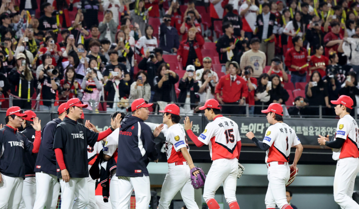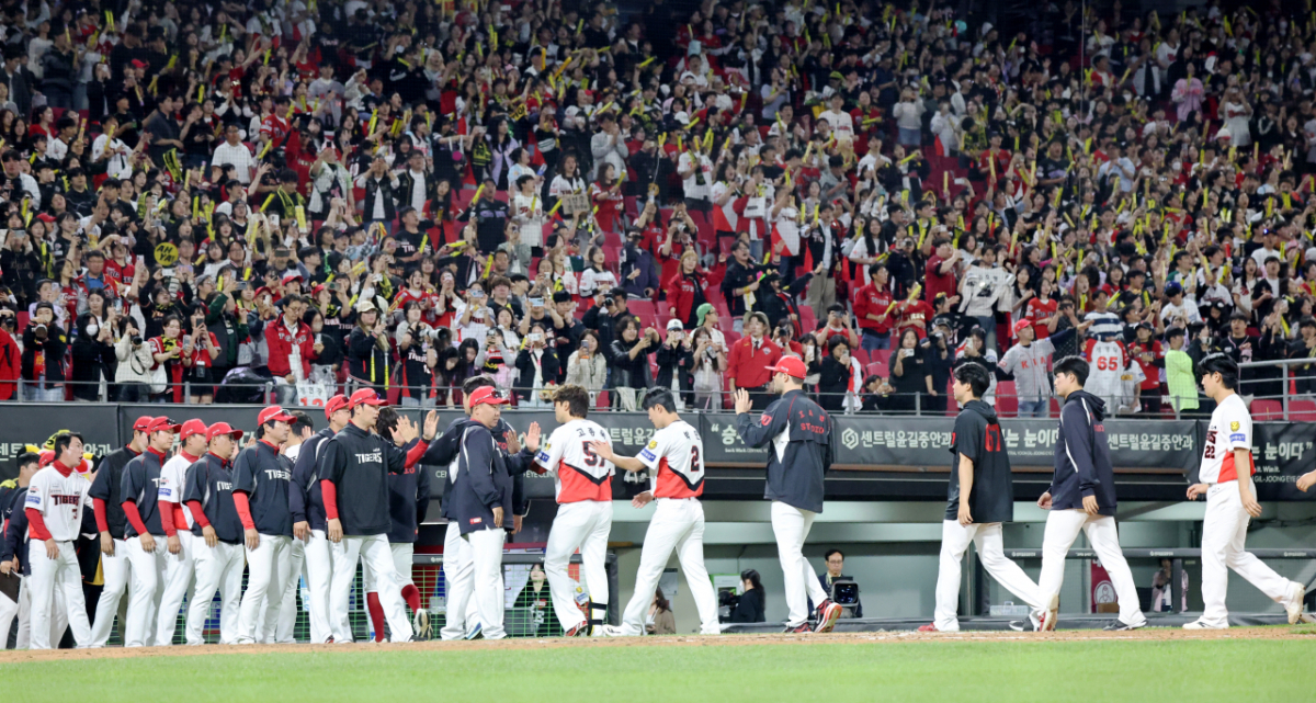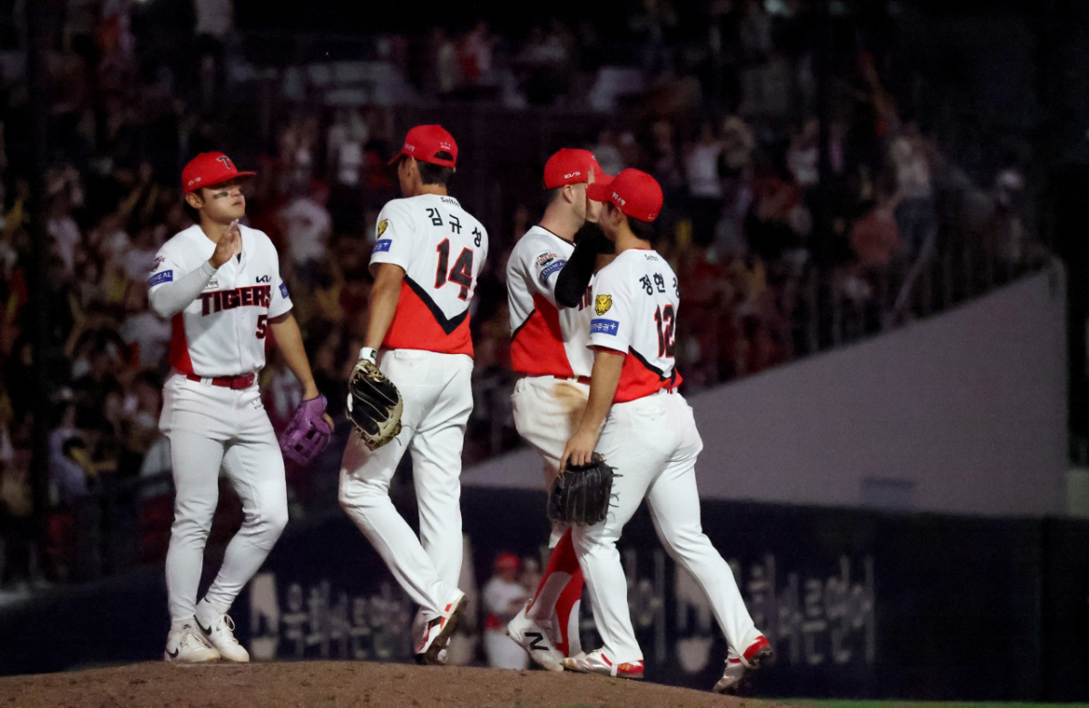 기아 선수들이 16일 광주KIA챔피언스필드에서 열린 2026KBO리그 기아타이거즈와 키움히어로즈의 경기에서 5-1로 역전승했다. 기아는 승리 후 팬들에게 인사를 하며 자축했다. 이로써 기아는 7연승을 질주하며 상위권으로 올라섰다. 기아 선수들이 16일 광주KIA챔피언스필드에서 열린 2026KBO리그 기아타이거즈와 키움히어로즈의 경기 5-1로 역전승한 후 팬들에게 인사를 하며 자축하고 있다. 기아는 7연승을 질주중으로 상위권으로 올라서고 있다. 2026.04.16. 독자들의 PICK! 100만원도 못 벌던 개그맨..."수입 1000배" 변호사 된 깜짝 근황 "조진웅, 은퇴할 줄 몰랐다…식사 제안도 거절" 정지영 감독이 전한 근황 치어리더 정가예 "폭언·욕설에 병원 치료→활동 중단" 무슨 일? "새벽에 전화, 돈 요구" 김원희, 사생활 털렸다...해킹범이 협박