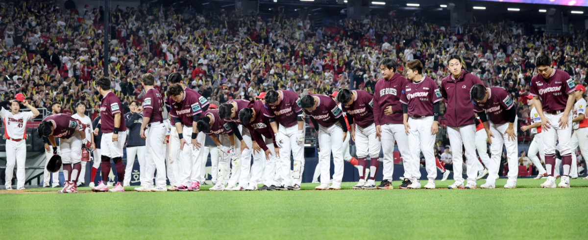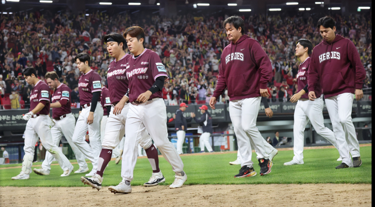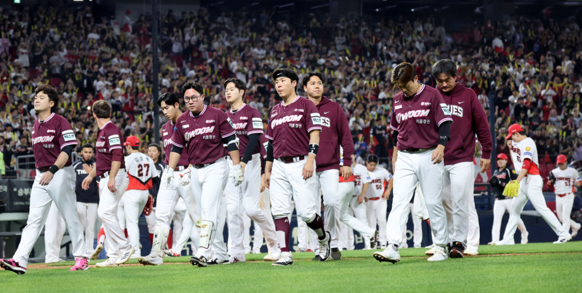 키움 선수들이 16일 광주KIA챔피언스필드에서 열린 2026KBO리그 기아타이거즈와 키움히어로즈의 경기에서 1-5로 역전패했다. 에이스 알칸타라도 키움의 연패 행진을 막지 못했다. 키움 선수들은 경기가 끝난 후 그라운드를 나섰다. 키움 선수들이 16일 광주KIA챔피언스필드에서 열린 2026KBO리그 기아타이거즈와 키움히어로즈의 경기 1-5로 역전패한 후 그라운드를 나서고 있다. 2026.04.16. 독자들의 PICK! 100만원도 못 벌던 개그맨..."수입 1000배" 변호사 된 깜짝 근황 "조진웅, 은퇴할 줄 몰랐다…식사 제안도 거절" 정지영 감독이 전한 근황 치어리더 정가예 "폭언·욕설에 병원 치료→활동 중단" 무슨 일? "새벽에 전화, 돈 요구" 김원희, 사생활 털렸다...해킹범이 협박