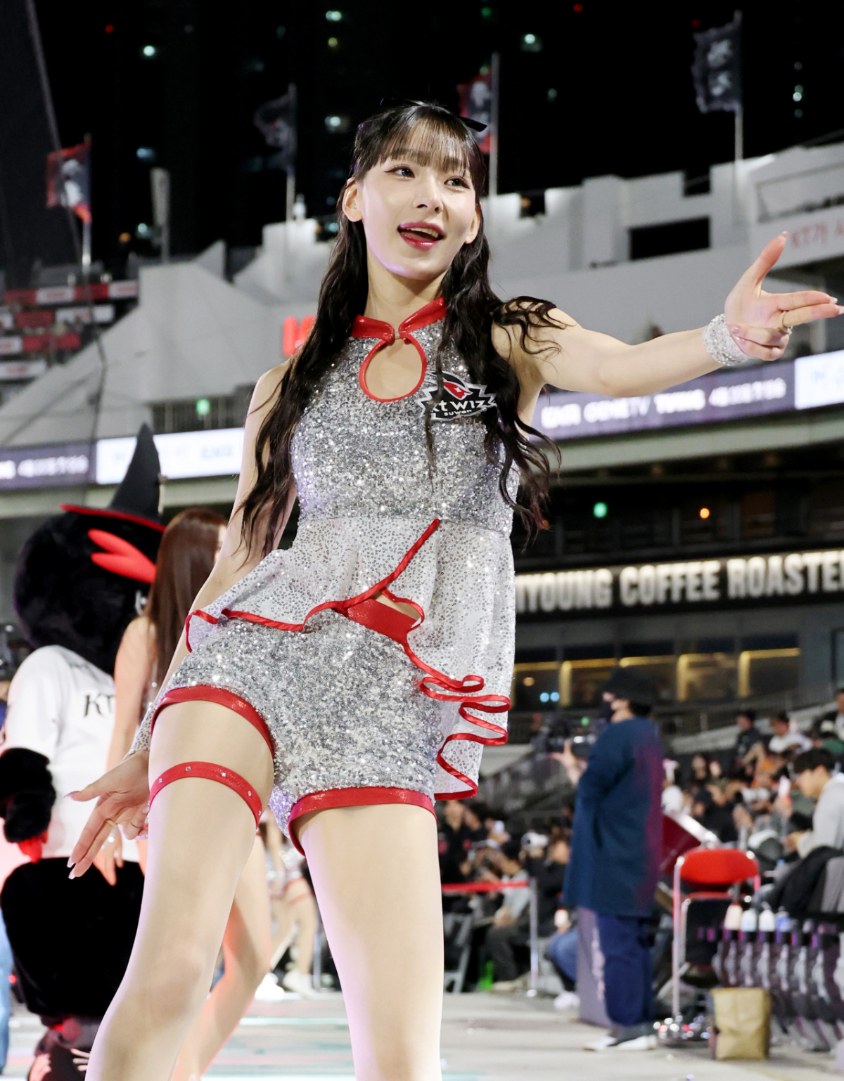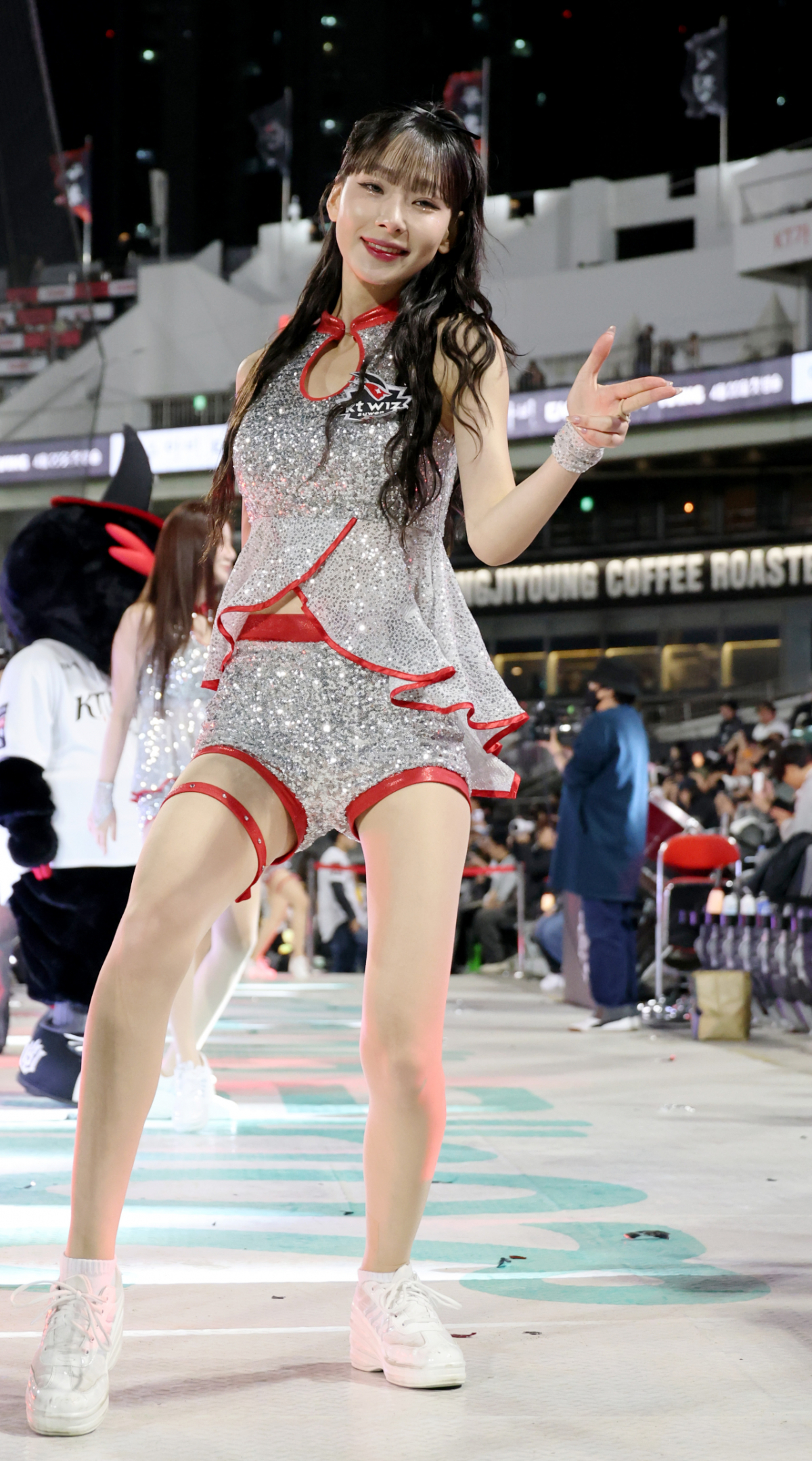 KT 치어리더 정희정이 17일 수원KT위즈파크에서 열린 2026KBO리그 KT위즈와 키움히어로즈의 경기에서 아웃송댄스를 선보였다. 정희정은 연속으로 아웃송댄스를 선보였다. 이 경기는 2026년 4월 17일에 진행되었다. KT 치어리더 정희정이 17일 수원KT위즈파크에서 열린 2026KBO리그 KT위즈와 키움히어로즈의 경기에서 연속으로 아웃송댄스를 선보이고 있다. 2026.04.17. 독자들의 PICK! '성매매 논란' 지나, 결혼·출산?…웨딩드레스 이어 유모차까지 100만원도 못 벌던 개그맨..."수입 1000배" 변호사 된 깜짝 근황 "제수씨와 잠자리를?" 초강수 질문…'친자확인' 남편, 끝내 결백 입증 "조진웅, 은퇴할 줄 몰랐다…식사 제안도 거절" 정지영 감독이 전한 근황