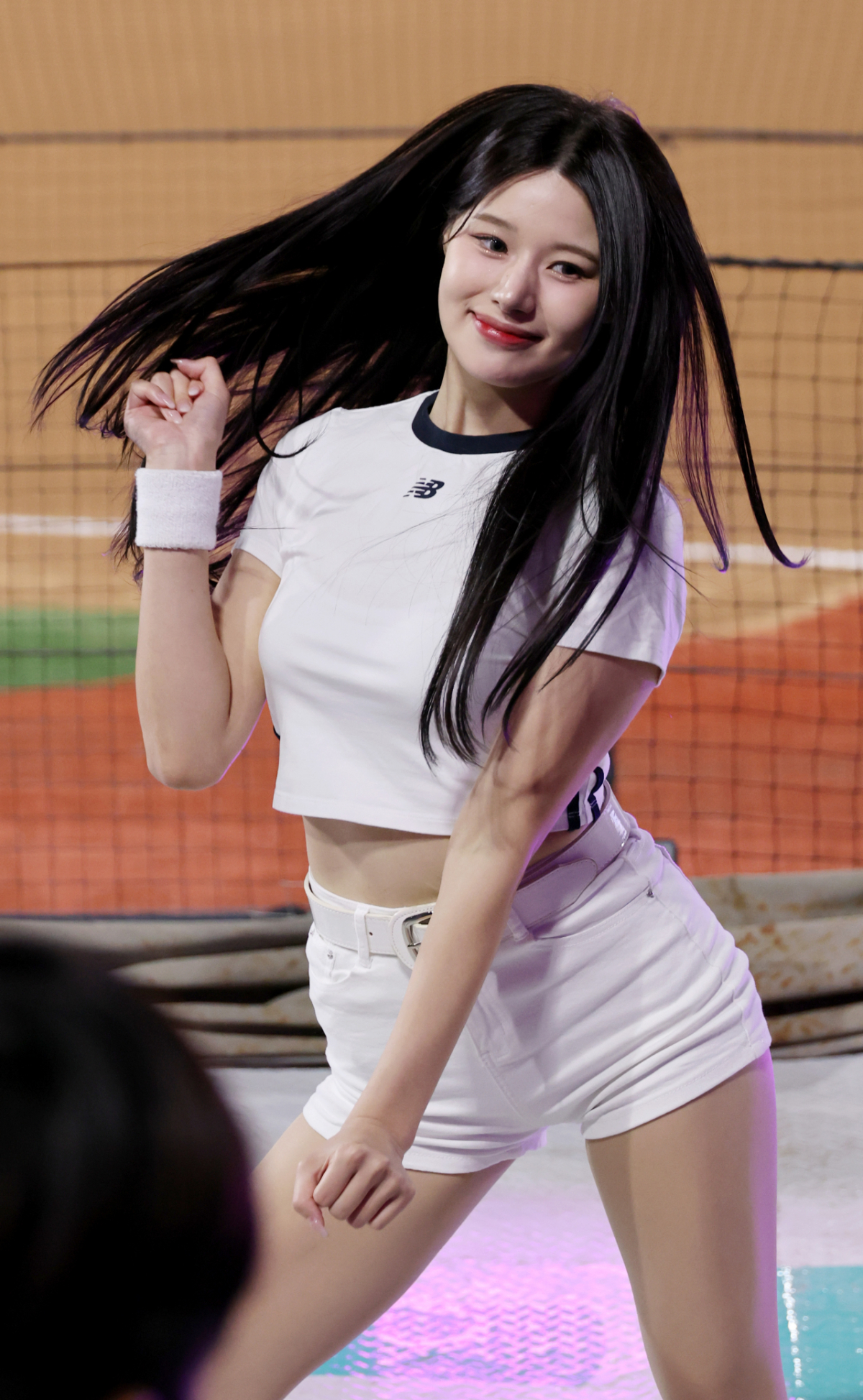 KT 치어리더 이예빈이 17일 수원KT위즈파크에서 열린 2026KBO리그 KT위즈와 키움히어로즈의 경기에서 공연을 펼치고 있다. 2026.04.17.