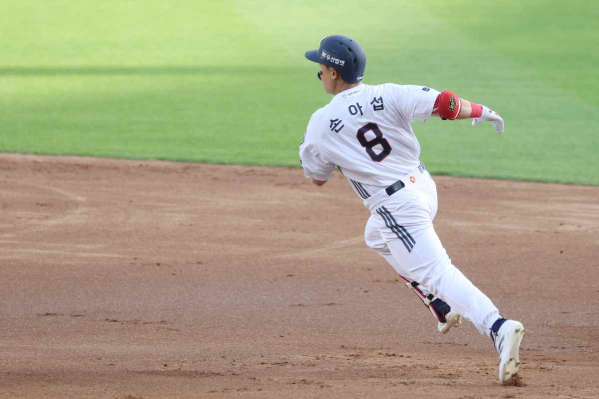 두산 손아섭이 3회말 무사에서 좌월 2루타를 날리고 질주하고 있다.